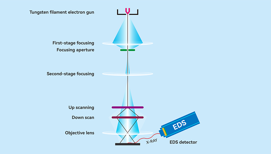 Применяется высокочувствительный четырехщелевой детектор электронов обратного рассеяния, независимая визуализация и произвольный синтез сигналов, может дать богатую информацию о составе, хорошую экологическую адаптацию.